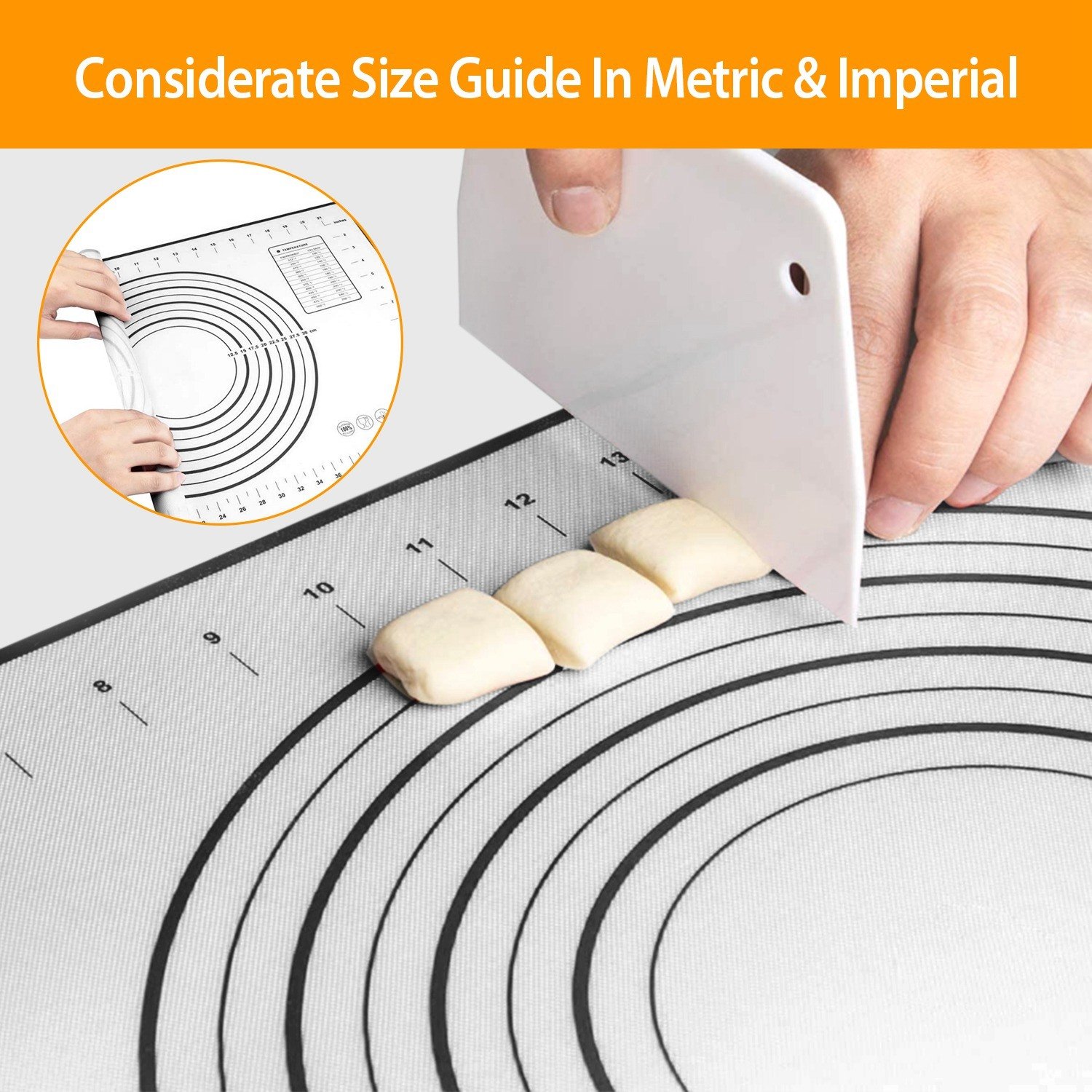 **FOOD GRADE SILICONE*:Our rolling mat is made of Food-Grade Silicone,no harm to the body,safe use for temperatures among -40℉-464℉,free of unpleasant chemical odors,providing you more time to enjoy your creations. No need to add extra flour or oil,our large nonstick sheet keeps work surfaces clean so you don’t have to spend hours scraping the dried dough off your countertops!